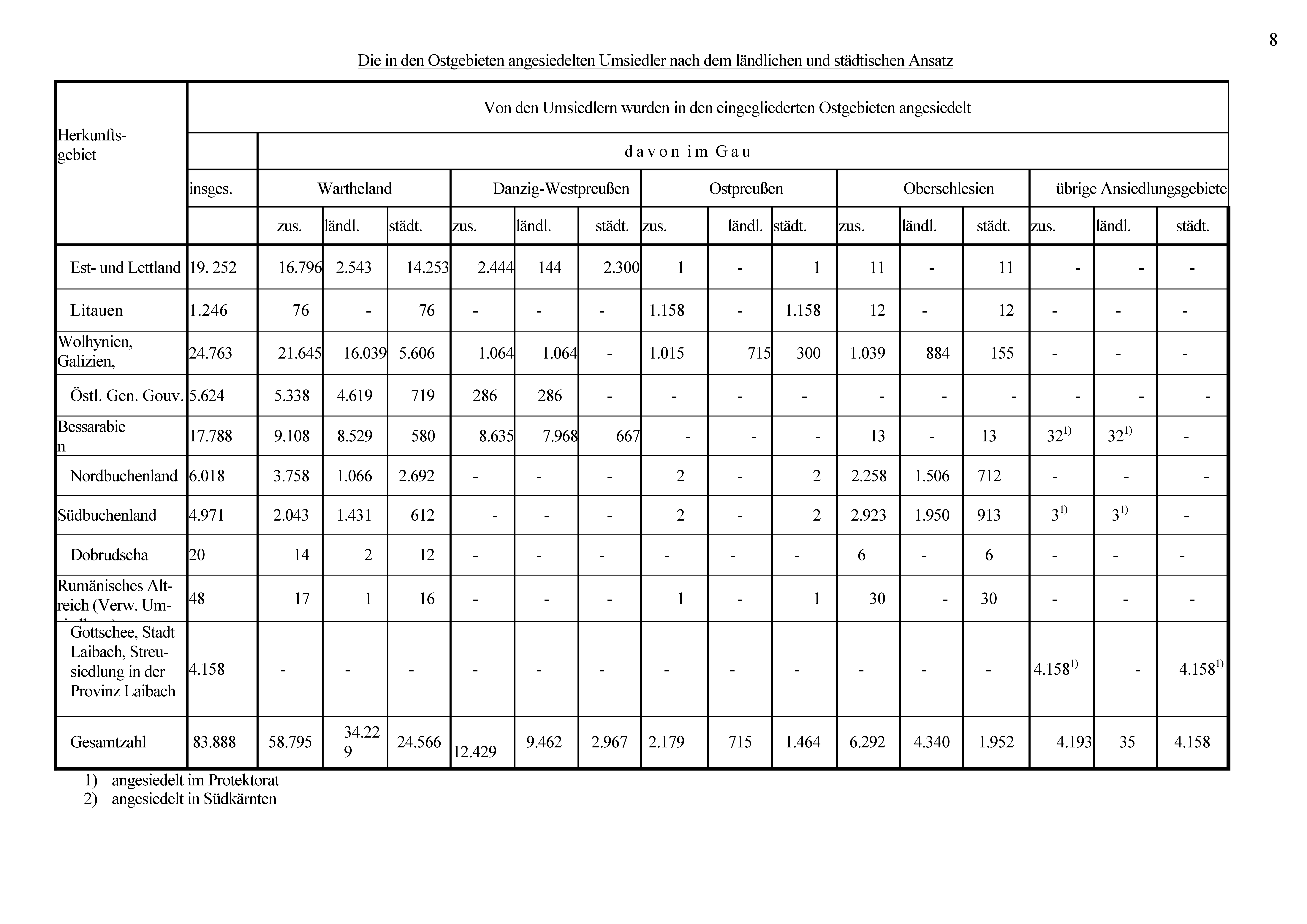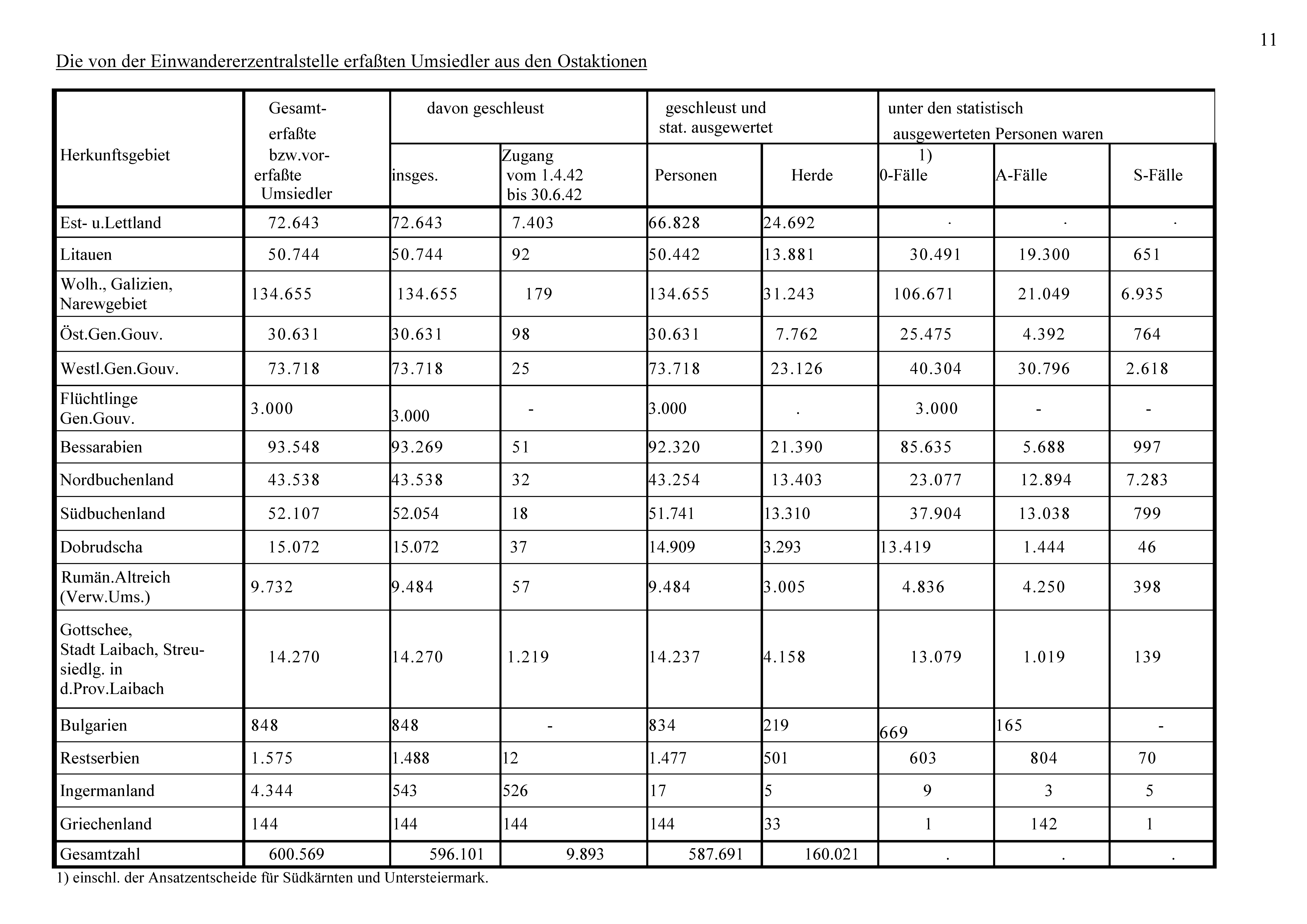 ⮚ Statistik über die in den Ostgebieten angesiedelten Umsiedler